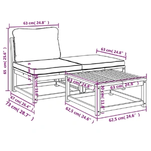 This wooden garden lounge set with cushions has an elegant design and is a great choice for relaxing and enjoying in the garden or patio. Solid acacia wood: Solid acacia wood is a beautiful natural material. Acacia wood is a tropical hardwood, which is dense, sturdy, and durable.Comfortable seat experience: The backrest and the thickly-padded cushions make the garden sofa set more comfortable to sit on.Slatted design: The slatted design of the wooden lounge set effectively prevents water from pooling, ensuring that the seat remains dry and free from potential rot.Modular design: This outdoor furniture set features a modular design, making it completely flexible and easy to move around to suit any setting. You can combine it with other modular segments available in the drop-down menu to create your own personal garden lounge set configurations! Good to know:To make sure your outdoor furniture stays beautiful, we recommend protecting it with a waterproof cover.