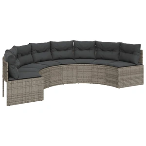 This half-round-shaped garden sofa set is the perfect addition to your garden, terrace, or patio, providing a comfortable and inviting space for chatting with family and friends or simply relaxing and enjoying the outdoors. Durable material: PE rattan, also known as poly rattan, is a strong, low-maintenance synthetic material that looks like natural rattan. It's lightweight, easy to clean, and commonly used for outdoor furniture due to its durability and weather-resistant properties.Comfortable seat experience: This outdoor furniture, complete with thickly padded cushions, offers a comfortable seating experience.Removable and washable cover: These seat cushions feature removable covers for easy washing and maintenance.Glass tabletop: The outdoor table's top is made from strong and durable tempered glass, making it easy to clean with a damp cloth and adding a touch of elegance to your outdoor space.Versatile footstool: The stool is versatile, serving as a comfortable footrest for when you're lounging on the sofa or as an extra seat in your garden. Good to know:To make sure your outdoor furniture stays beautiful, we recommend protecting it with a waterproof cover.