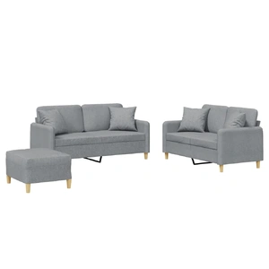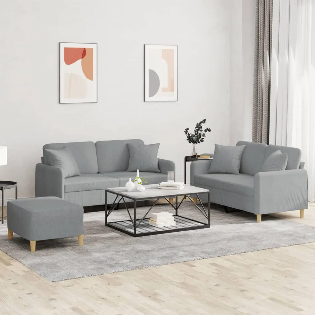 This sofa set is an excellent place for chatting, reading, watching TV or just relaxing. It is meant to be a focal point in your home. Durable fabric: The fabric features a simple and clean look while remaining breathable and long-lasting.Sturdy and stable frame: The plywood and metal frame of the sofa seating ensures sturdiness and stability.Comfortable seat experience: The sofa is highly comfortable with the thickly padded seat, armrests and back cushions.Practical couch pillows: These square throw pillows not only spruce up your decor but can also add extra comfort when you are seated or lying.Versatile footstool: The footstool is suitable for resting your feet when you lie on a sofa or offering you an additional seat in your room. Additionally, the simple design and compact size make it ideal for almost all your living spaces.