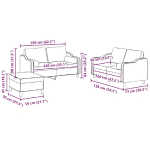 This sofa set is an excellent place for chatting, reading, watching TV, or just relaxing. It is meant to be a focal point in your home. Durable fabric: The fabric features a simple and clean look while remaining breathable and long-lasting.Sturdy and stable frame: The plywood and metal frame of the sofa seating ensures sturdiness and stability. Comfortable seat experience: The sofa is highly comfortable with the thickly padded seat, armrests, and back pillow. Practical roll pillows: These cylinder pillows not only spruce up your decor but can also add extra comfort when you are seated or lying. Versatile footstool: The footstool is suitable for resting your feet when you lie on a sofa or offering you an additional seat in your room. Additionally, the simple design and compact size make it ideal for almost all your living spaces.