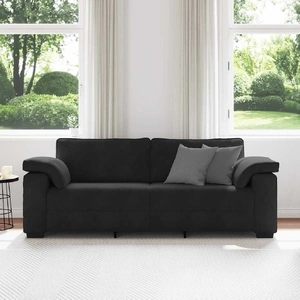 Experience exceptional comfort and style with the 3-seater sofa, perfect for chatting, reading, watching TV, or simply unwinding. Soft and comfortable material: Velvet fabric features a soft and smooth surface that delivers a delightful sensation against the skin, bringing you warmth and ultimate comfort.Comfortable seating experience: Designed for relaxation, this relax sofa comes with thickly padded foam seats and fibre-filled cushions for excellent support, making it the ideal place to relax in comfort.Sturdy and stable frame: The plywood and metal frame and supportive legs of the sofa ensure sturdiness, allowing you to enjoy a comfortable seating experience without worrying about stability.Versatile use: Whether placed in the living room, bedroom, study, or reception area, the modern sofa effortlessly complements any setting. From spacious rooms to intimate nooks, its flexible design ensures it enhances any space without limitation.Eye-catching design: The armchair showcases the combination of velvet and plywood armrests, enhancing the fusion of its different stylistic elements and adapting it to both modern and traditional interiors.