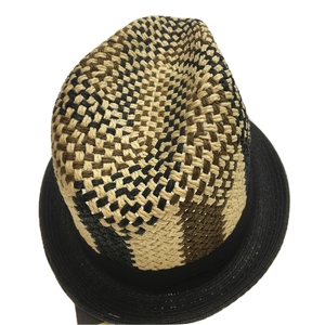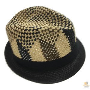 3 Tone Lattice Weave PAPER STRAW TRILBY HAT Fedora Trim Sun Summer Cap - M (57cm)