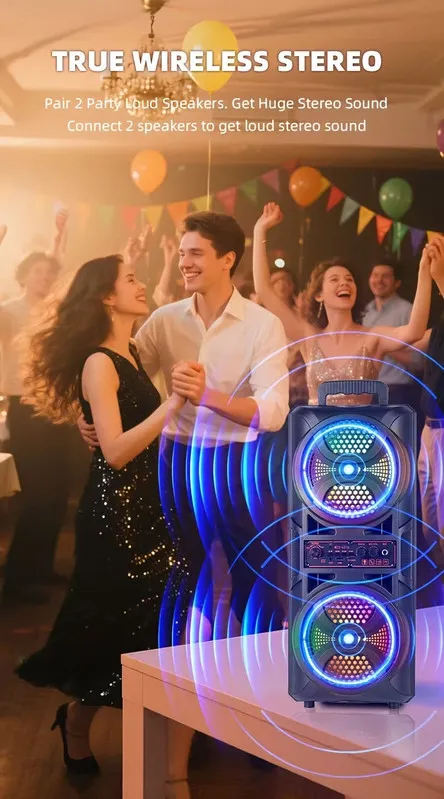 Experience deep bass and crystal-clear sound anywhere with the 3000W Portable Wireless Speaker.