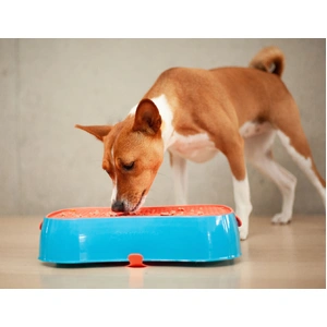 - 4-in-1 system: Slow feeder, lick mat, food prep lid, and travel bowl
