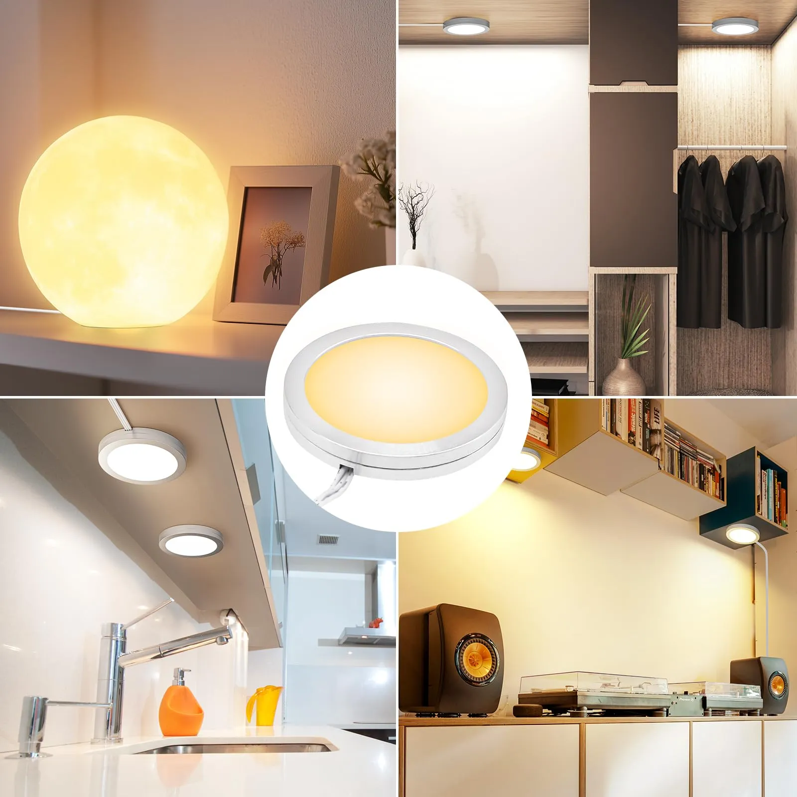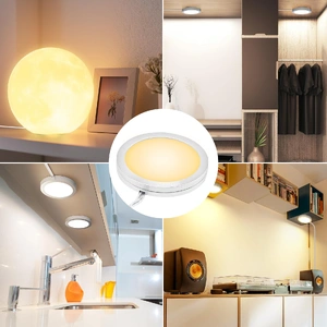 - 【Ultra Thin Design】 The puck lights are only 0.31 inches thick, round, and almost invisible under the cabinets until turned on.