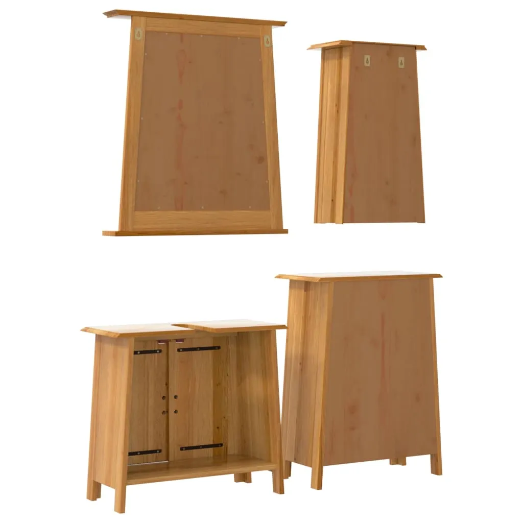 This bathroom furniture set is an excellent addition to your bathroom, giving it a tidy and striking appearance! Solid pine wood: Solid pine wood is a beautiful natural material. Pine wood has a straight grain, and the knots give the material its signature, rustic look.Ample storage space: The bath cabinet offers ample space to easily accommodate your essential toiletries and bath items such as soaps, shampoo, toothpaste, etc.Convenient handles: The metal handles allow you to open the bathroom storage cabinet easily to get what you want.Wall-mounted function: The bathroom wall cabinet can be wall-mounted for extra storage space. That way, you can maximise your floor space and keep the area clean.Clear image: The mirror provides a fine and non-distorted reflection, so it is suitable for making up, shaving or checking the suit before going out. Warning:To prevent it from tipping over, this product must be used with the wall attachment device (not provided). Good to know:Each item is unique with variations in colours and grains. The delivery is random, ensuring the exclusivity and individuality of your product.