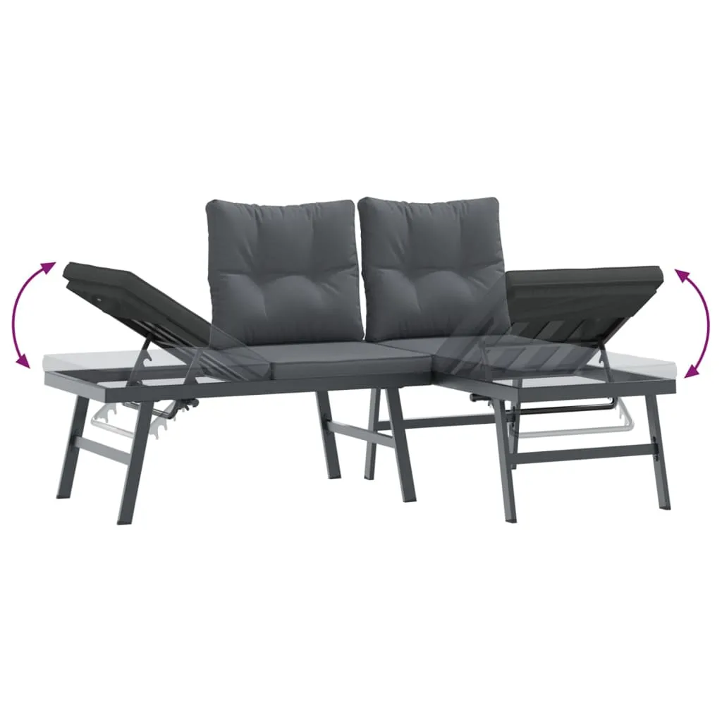These garden benches are perfect for outdoor use and are designed to be the focal point of your garden, terrace, patio, etc. Robust and stable frame: The powder-coated steel frame is strong, stable, durable, and resistant to corrosion and harsh weather, ensuring long-lasting performance.Adjustable side seat: The small side seat panel of each sofa can be lifted up, turning the sofa into a comfortable lounger for relaxation. The adjustable seat can be set to 3 different levels to meet your needs for reading, sunbathing, or napping.Comfy design: The slightly curved backrests add extra seating comfort for the bench.Comfortable seat experience: This outdoor furniture, complete with a thickly padded cushion, offers a comfortable seating experience.Removable and washable cover: These seat cushions feature removable covers for easy washing and maintenance. Good to know:To make sure your outdoor furniture stays beautiful, we recommend protecting it with a waterproof cover.