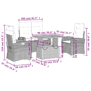 This garden dining set is a great choice for al fresco dining or just relaxing in the garden, backyard, or on the patio. Durable material: PE rattan, also known as poly rattan, is a strong, low-maintenance synthetic material that looks like natural rattan. It's lightweight, easy to clean, and commonly used for outdoor furniture due to its durability and weather-resistant properties.Adjustable backrest: This garden seat has a handle. You can adjust the backrest to any position by pulling the handle, and quickly return it to its original position.Adjustable tabletop: The tabletop can be lifted to make the table higher, which transforms the outdoor table from a coffee table to a dining table. It's perfect for having guests over or eating meals outside.Removable and washable cover: These seat cushions feature removable covers for easy washing and maintenance. The back cushions have a flap at the back for easy attachment to the backrests.Comfortable seat experience: This outdoor furniture, complete with thickly padded cushions, offers a comfortable seating experience. Good to know:To make sure your outdoor furniture stays beautiful, we recommend protecting it with a waterproof cover.