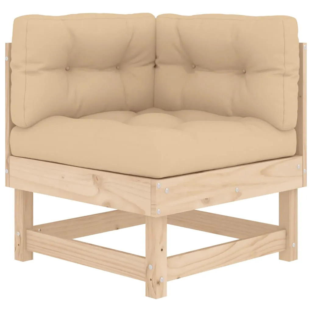 This wooden garden lounge set, standing out with the slatted design and soft cushions, will make a great addition to your garden, patio, or terrace for enjoying a cosy time with your family or friends. Solid pine wood: Solid pine wood is a beautiful natural material. Pine wood has a straight grain, and the knots give the material its signature, rustic look.Sturdy and stable frame: The wooden frame makes the lounge set sturdy and stable for daily outdoor use.Comfortable seat experience: The backrest and armrest add extra seating comfort for the garden furniture set. Also, the thickly padded cushions provide comfort for your sitting time.Modular design: The sofa set is flexible and easy to move around. You can combine it with other modular segments in the webshop to create your own personal garden lounge set configurations! Good to know:To make sure your outdoor furniture stays beautiful, we recommend protecting it with a waterproof cover.