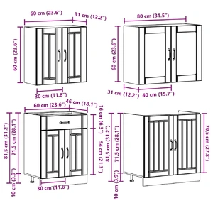 - 1 x Sink base cabinet: 80 x 46 x 81.5 cm (W x D x H)