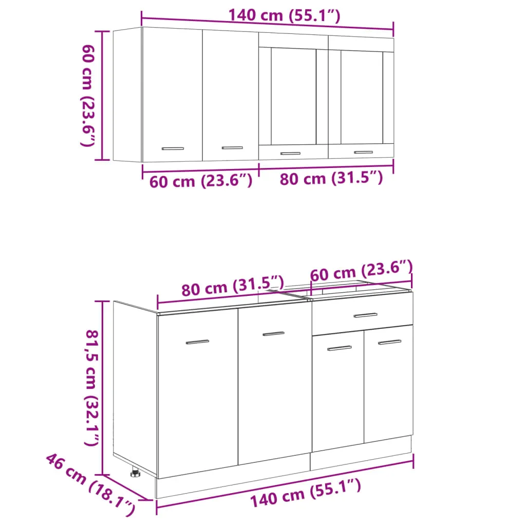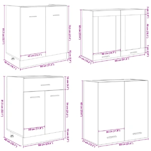 This kitchen cabinet set optimises your kitchen space, providing ample storage space for your personal belongings! Long-lasting material: The engineered wood is of exceptional quality with a smooth surface and also features strength, stability, and resistance to moisture.Ample storage space: The kitchen unit offers sufficient space to store bowls, plates, pots, and other kitchen supplies.Sturdy top: The top of the kitchen cabinet can be used to place spices, kitchen utensils and cleaning supplies.Space saving: This kitchen cupboard can be wall-mounted to add extra storage space. That way, you can maximise your floor space and keep the area clean.Easy to maintain: Thanks to its smooth surface, the kitchen storage unit is easy to clean with a damp cloth and requires less maintenance. Warning:To prevent it from tipping over, this product must be used with the provided wall attachment device. Good to know:The worktop is not included in the delivery.Screws and plugs for inside the wall are not included. We advise to find and use screws and plugs suitable specifically for your walls. If you're not sure, you can consult with a professional. Please read and follow each step of the instructions.