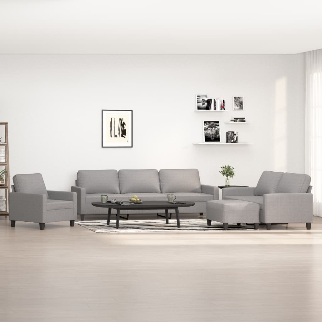 This sofa set is an excellent place for chatting, reading, watching TV or just relaxing. It is meant to be a focal point in your home. Durable fabric: The fabric features a simple and clean look, and is breathable and durable.Sturdy and stable frame: The plywood and metal frame of the fabric sofa ensures sturdiness and stability. The frame of the footstool is also made of plywood.Comfortable seat experience: The sofa is highly comfortable with the thickly padded seat, armrests and back pillow.Versatile footstool: The stool is suitable for resting your feet when you lie on a sofa, or offering you an additional seat in your room. Additionally, the simple design and compact size make it ideal for almost all your living spaces.Eye-catching design: Featuring a simple yet modern design, this sofa seating is meant to be an eye-catcher in your room. Note:Each product comes with an assembly manual in the box for easy assembly.