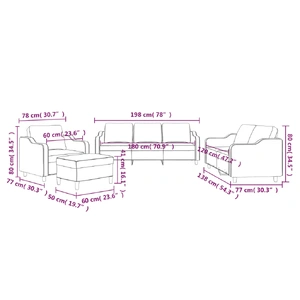 This sofa set is an excellent place for chatting, reading, watching TV, or just relaxing. It is meant to be a focal point in your home. Durable fabric: The fabric features a simple and clean look while remaining breathable and long-lasting.Sturdy and stable frame: The plywood and metal frame of the sofa seating ensures sturdiness and stability. Comfortable seat experience: The sofa is highly comfortable with the thickly padded seat, armrests, and back pillow. Versatile footstool: The footstool is suitable for resting your feet when you lie on a sofa or offering you an additional seat in your room. Additionally, the simple design and compact size make it ideal for almost all your living spaces.