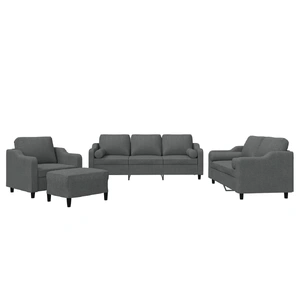 This sofa set is an excellent place for chatting, reading, watching TV, or just relaxing. It is meant to be a focal point in your home. Durable fabric: The fabric features a simple and clean look while remaining breathable and long-lasting.Sturdy and stable frame: The plywood and metal frame of the sofa seating ensures sturdiness and stability. Comfortable seat experience: The sofa is highly comfortable with the thickly padded seat, armrests, and back pillow. Practical roll pillows: These cylinder pillows not only spruce up your decor but can also add extra comfort when you are seated or lying. Versatile footstool: The footstool is suitable for resting your feet when you lie on a sofa or offering you an additional seat in your room. Additionally, the simple design and compact size make it ideal for almost all your living spaces.