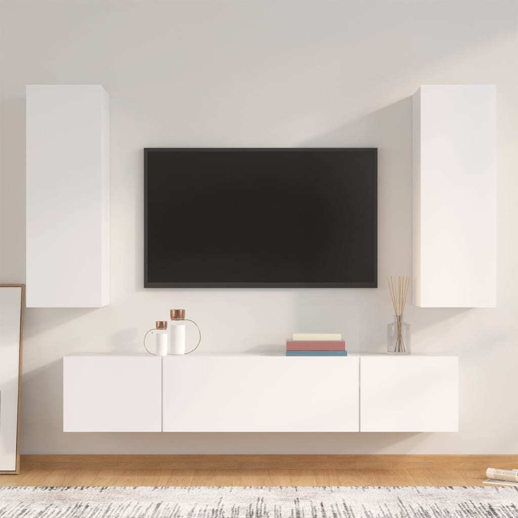 This classic TV cabinet set is designed to be a focal point of your room, featuring a trendy yet practical design. Sturdy material: The engineered wood is of exceptional quality with smooth surface and also features strength, stability and resistance to moisture.Ample storage: Each TV stand provides ample storage space to keep all your magazines, DVDs and any other items well organised.Wall-mounted design: The TV unit doesn't take any floor space. You can hang it on the wall easily. Note:Screw(s) and plug(s) for inside the wall are not included. Seek and use screw(s) and plug(s) suitable for your walls. If you are uncertain, seek professional advice. Read and follow each step of the instruction carefully.Each product comes with an assembly manual in the box for easy assembly.