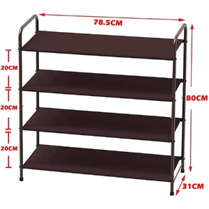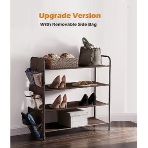 - 4-Tier shoe rack: The bronze shoe rack with 4 polyester fabric shelves fit boots, high heels or slippers, holding up to 16-20 pairs of shoes. The beautifully-designed 6 transparent side bags welcome keys, umbrellas, baby shoes, slippers, socks and any other small items.