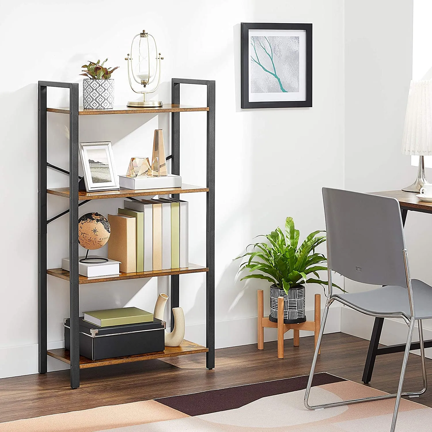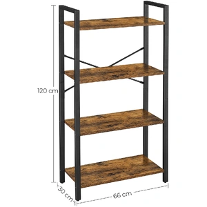 4-Tier Storage Rack with Steel Frame, 120 cm High, Rustic Brown and Black
