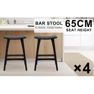 La Bella 4 Set Wooden Bar Stool 65cm KANSO Kitchen Barstools Padded PU Dining Chair - Black