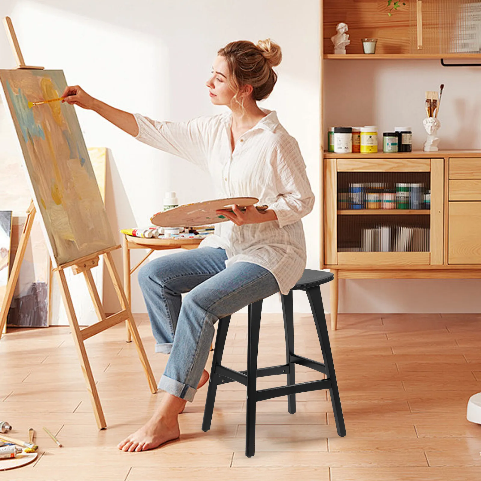 The smooth finish and low-maintenance material make it perfect for any setting, whether styled as a solo piece or paired with others for a cohesive look. Ideal for homes, cafes, or bars, this stool embodies thoughtful craftsmanship and minimalist charm, adding warmth and character wherever it is placed.