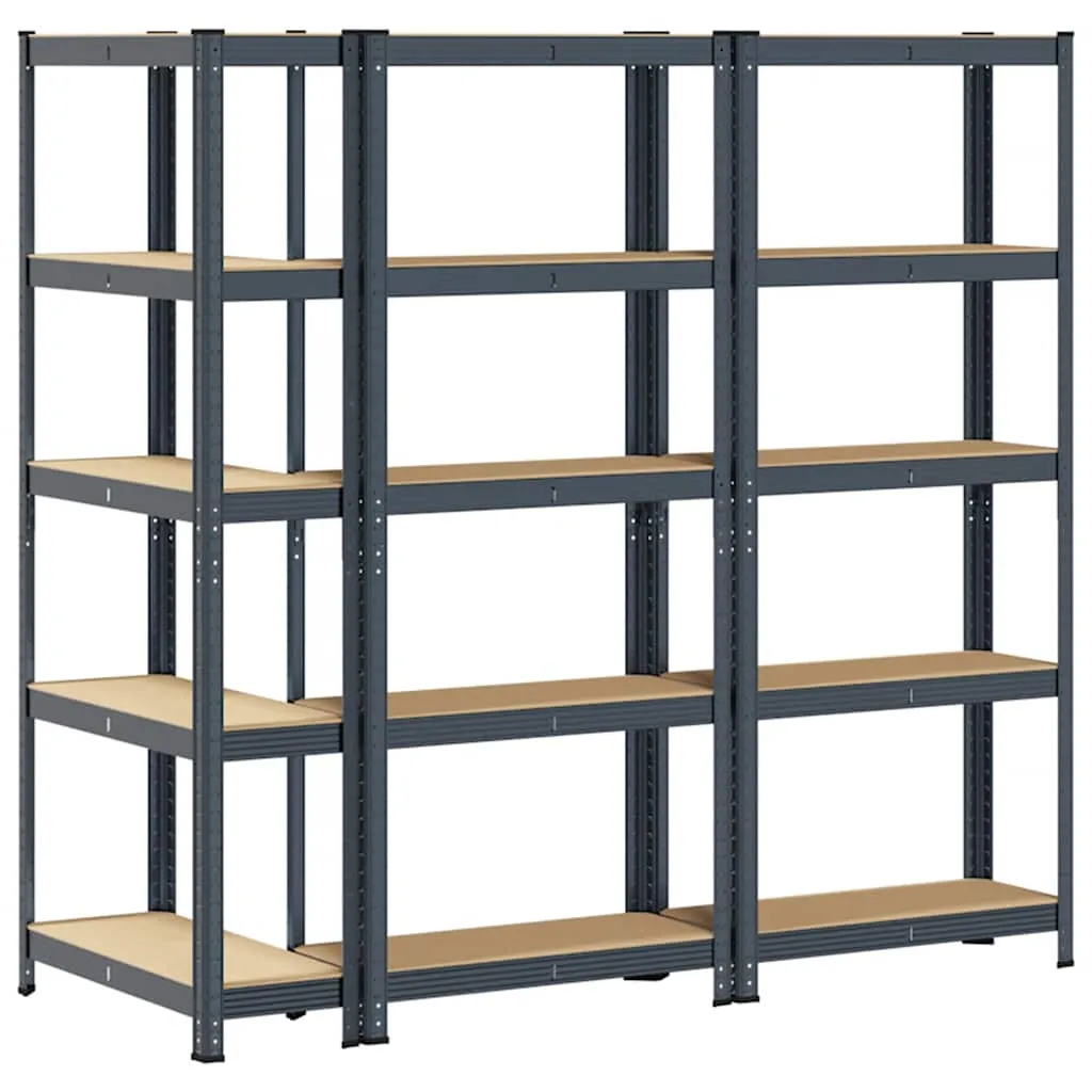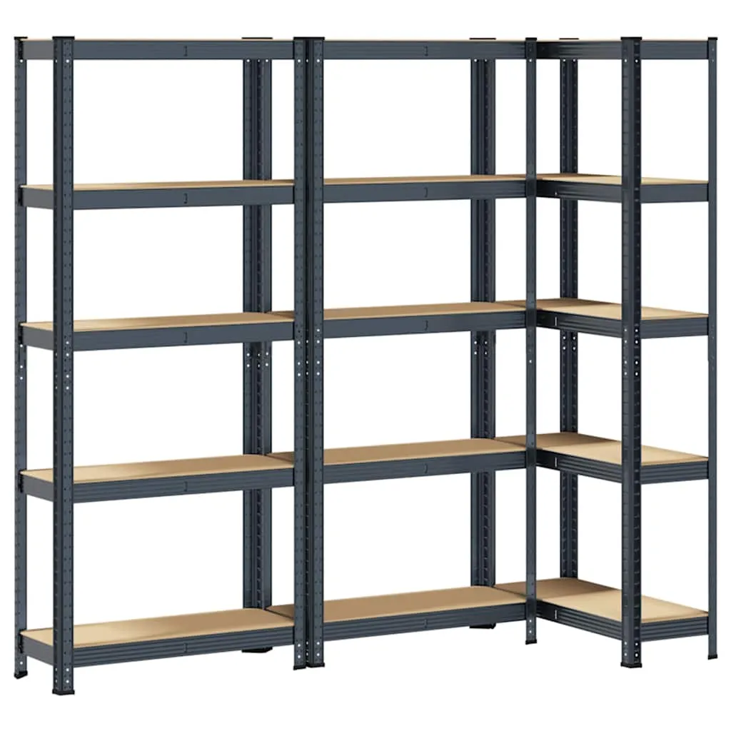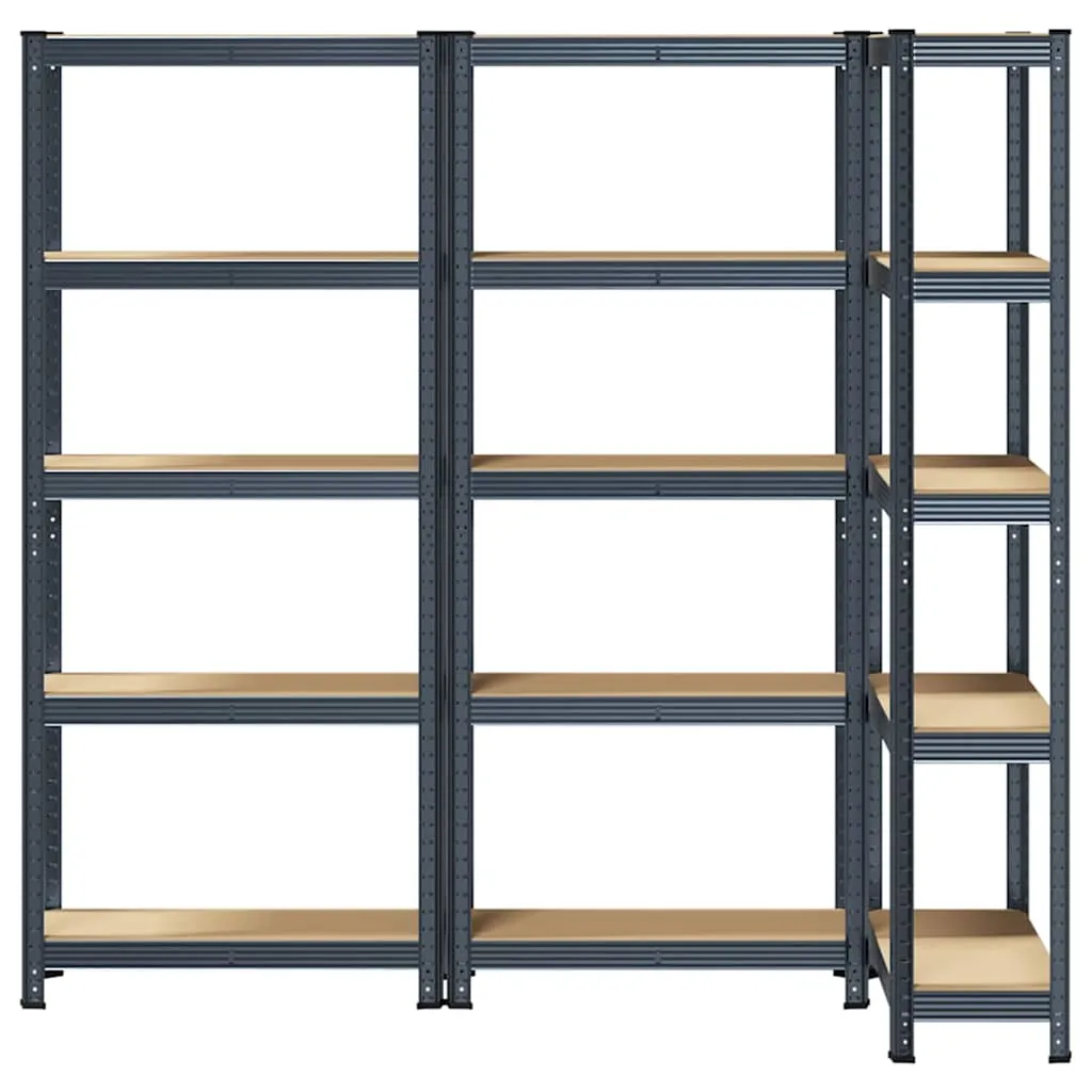 These storage shelves are an excellent choice for both residential and commercial storage, providing plenty of space to keep all items neatly organised. Sturdy material: The storage rack consists of a steel frame and engineered wood boards. The steel frames guarantee sturdiness and stability, while the engineered wood offers strength, stability, and resistance to moisture.Strong load capacity: Thanks to the thick material, a reinforcement bar below each shelf, and boltless shelving design, this garage storage shelf has a great load capacity.Flexible storage: This storage shelf can be divided into two separate small racks. Also, the layers are height-adjustable. Thus, the shelf provides ample storage space for all items you want to store and always keeps your space neat and well-organised. Warning:To prevent it from tipping over, this product must be used with the wall attachment device (not provided).