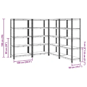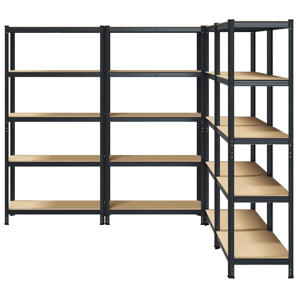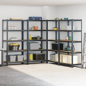 These storage shelves are an excellent choice for both residential and commercial storage, providing plenty of space to keep all items neatly organised. Sturdy material: The storage rack consists of a steel frame and engineered wood boards. The steel frames guarantee sturdiness and stability, while the engineered wood offers strength, stability, and resistance to moisture.Strong load capacity: Thanks to the thick material, reinforcement bars below each shelf, and boltless shelving design, this garage storage shelf has a great load capacity.Flexible storage: This storage shelf can be divided into two separate small racks. Also, the layers are height adjustable. Thus, the shelf provides ample storage space for all items you want to store and always keeps your space neat and well-organised. Warning:To prevent it from tipping over, this product must be used with the wall attachment device (not provided).