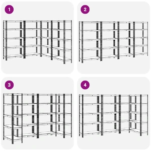 These storage shelves are an excellent choice for both residential and commercial storage, providing plenty of space to keep all items neatly organised. Sturdy material: The storage rack consists of a steel frame and engineered wood boards. The steel frames guarantee sturdiness and stability, while the engineered wood offers strength, stability, and resistance to moisture.Strong load capacity: Thanks to the thick material, a reinforcement bar below each shelf, and boltless shelving design, this garage storage shelf has a great load capacity.Flexible storage: This storage shelf can be divided into two separate small racks. Also, the layers are height-adjustable. Thus, the shelf provides ample storage space for all items you want to store and always keeps your space neat and well-organised. Warning:To prevent it from tipping over, this product must be used with the wall attachment device (not provided).