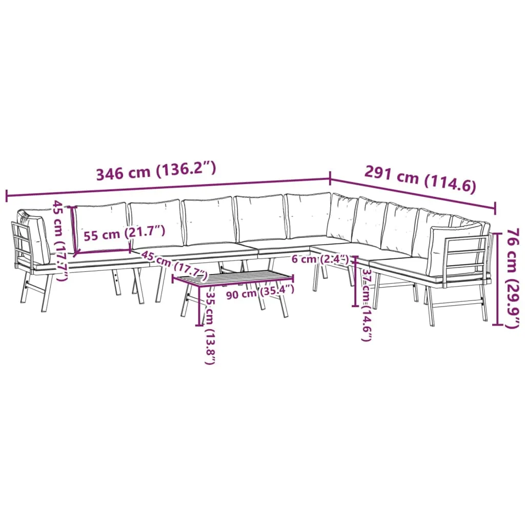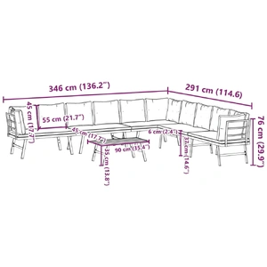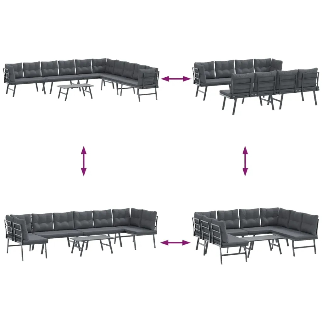 This garden bench set is perfect for outdoor use and is designed to be the focal point of your garden, terrace, patio, etc. Robust and stable frame: The powder-coated steel frame is strong, stable, durable, and resistant to corrosion and harsh weather, ensuring long-lasting performance.Comfy design: The slightly curved backrests add extra seating comfort for the bench.Comfortable seat experience: This outdoor furniture, complete with a thickly padded cushion, offers a comfortable seating experience.Sturdy tabletop: The sturdy tabletop of the sofa table is perfect for placing your drinks, food, and other decorative items.Modern design: The coffee table not only adds charm to your living space but also effortlessly complements a wide range of furniture styles. Good to know:To make sure your outdoor furniture stays beautiful, we recommend protecting it with a waterproof cover.