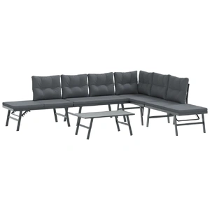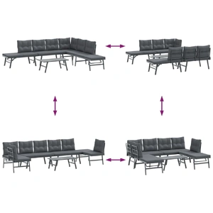 This garden bench set is perfect for outdoor use and is designed to be the focal point of your garden, terrace, patio, etc. Robust and stable frame: The powder-coated steel frame is strong, stable, durable, and resistant to corrosion and harsh weather, ensuring long-lasting performance.Adjustable side seat: The small side seat panel of each sofa can be lifted up, turning the sofa into a comfortable lounger for relaxation. The adjustable seat can be set to 3 different levels to meet your needs for reading, sunbathing, or napping.Comfy design: The slightly curved backrests add extra seating comfort for the bench.Comfortable seat experience: This outdoor furniture, complete with a thickly padded cushion, offers a comfortable seating experience.Sturdy tabletop: The sturdy tabletop of the sofa table is perfect for placing your drinks, food, and other decorative items.Modern design: The coffee table not only adds charm to your living space but also effortlessly complements a wide range of furniture styles. Good to know:To make sure your outdoor furniture stays beautiful, we recommend protecting it with a waterproof cover.