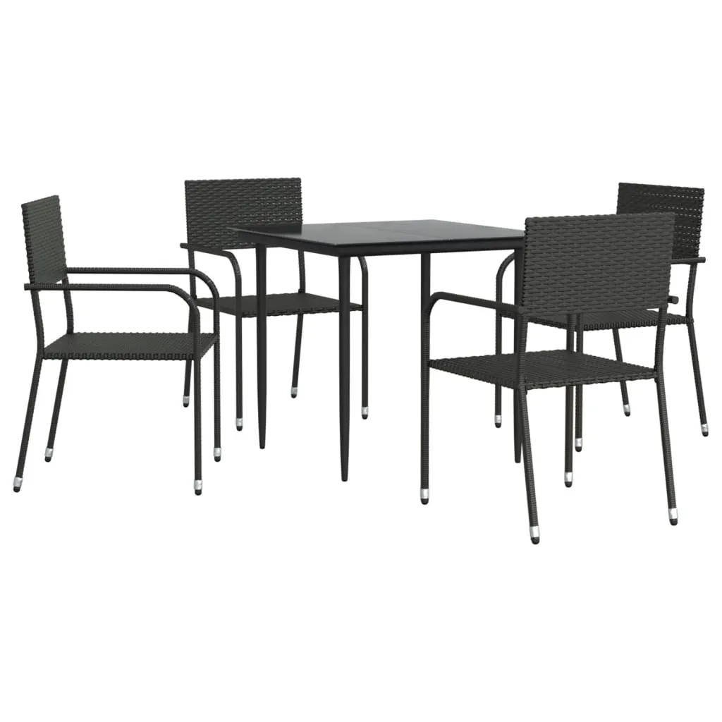 Enjoy a nice meal or afternoon tea in your outdoor space with this garden dining set! Featuring an elegant design, it will become the focal point of your garden and patio! Durable material: Poly rattan is an exceptional resistance material and durable in different weather conditions. It also needs little maintenance.Sturdy frame: This garden table and chair are constructed with a steel frame, which ensures sturdiness and stability.Practical tabletop: The smooth tabletop of the dinner table is made of tempered glass which is easy to clean with a damp cloth. Additionally, the sturdy tabletop is perfect for placing meals, drinks, and other decorative items.Space-saving chair: The dinner chair is lightweight and can be stacked to save space when not in use. Good to know:To make sure your outdoor furniture stays beautiful, we recommend protecting it with a waterproof cover.