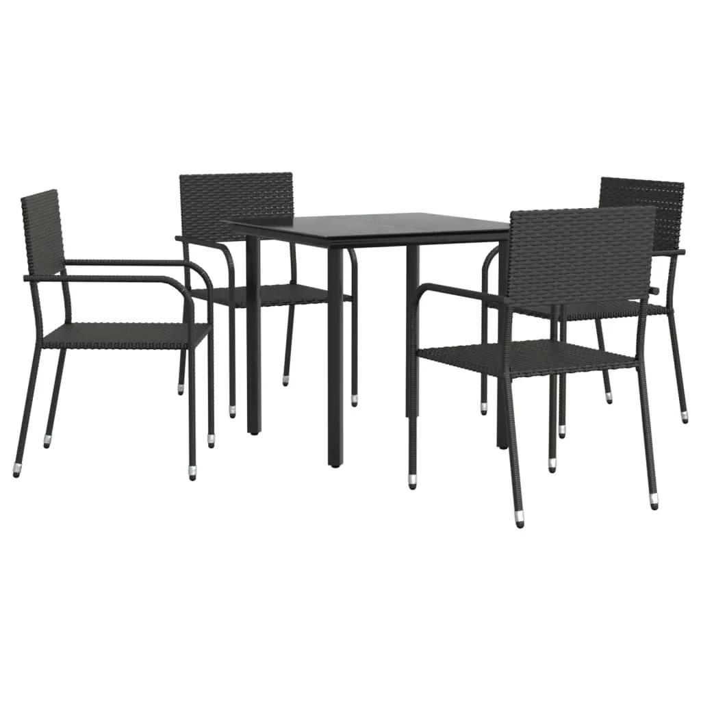 Enjoy a nice meal or afternoon tea in your outdoor space with this garden dining set! Featuring an elegant design, it will become the focal point of your garden and patio! Durable material: Poly rattan is an exceptional resistance material and durable in different weather conditions. It also needs little maintenance.Sturdy frame: This garden table and chair are constructed with a steel frame, which ensures sturdiness and stability.Practical tabletop: The smooth tabletop of the dinner table is made of tempered glass which is easy to clean with a damp cloth. Additionally, the sturdy tabletop is perfect for placing meals, drinks, and other decorative items.Space-saving chair: The dinner chair is lightweight and can be stacked to save space when not in use. Good to know:To make sure your outdoor furniture stays beautiful, we recommend protecting it with a waterproof cover.