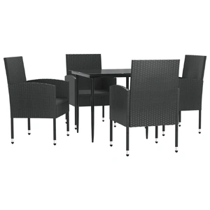 Enjoy a nice meal or afternoon tea in your outdoor space with this garden dining set! Featuring an elegant design, it will become the focal point of your garden and patio! Durable material: Poly rattan is an exceptional resistance material and durable in different weather conditions. It also needs little maintenance.Sturdy frame: This garden table and chair are constructed with a steel frame, which ensures sturdiness and stability.Practical tabletop: The smooth tabletop of the dinner table is made of tempered glass which is easy to clean with a damp cloth. Additionally, the sturdy tabletop is perfect for placing meals, drinks, and other decorative items.Comfortable seat experience: The thick and removable seat cushions are included for your comfort. Good to know:To make sure your outdoor furniture stays beautiful, we recommend protecting it with a waterproof cover.