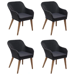 Create a compelling and cohesive aesthetic in your outdoor space with this garden dining set! The dinner table is made of solid acacia wood with an oil finish, which makes it stable, durable and easy to maintain. Featuring a powder-coated steel frame covered with weather-resistant PE rattan, these dining chairs are sturdy and easy to clean. The ergonomically-designed shape and thickly-padded cushions will provide the ultimate seating comfort. The low-maintenance polyester cushion covers can be easily removed and washed. Important note: We recommend covering the dining set during rain, snow and frost for its best service to last.