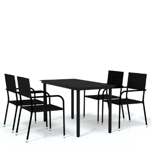 Enjoy a nice meal or afternoon tea in your outdoor space with this garden dining set! Featuring an elegant design, it will become the focal point of your garden and patio! The practical outdoor dining set has a steel frame, making it strong and sturdy. The garden chairs are made of water-resistant and maintenance-free PE rattan, making them perfect for outdoor use. Meanwhile, these outdoor chairs are lightweight and can be stacked to save space when not in use. In addition, the smooth glass tabletop is easy to clean with a damp cloth and excellent for placing meals, drinks and other decorative items. Note: In order to extend the life of your outdoor furniture, we recommend you to clean it regularly and do not leave it outdoors without protection unnecessarily.Clean: Use a mild soap solution.Storing: If possible, store in a cool, dry place indoors. If the product is stored outdoors, protect it with a waterproof cover. Wipe and dry the excess water or snow from flat surfaces after a rain or snowfall. Allow sufficient air circulation to avoid moisture-related damage.