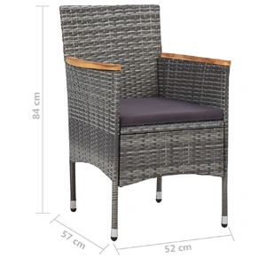 Create a compelling and cohesive aesthetic in your outdoor space with this garden dining set! This outdoor table is made of solid acacia wood, making it sturdy and stable. The oil-finished surface also makes the table easy to clean with a damp cloth. Additionally, the curved legs contribute to its stylish design. Featuring a steel frame covered with weather-resistant PE rattan, these dining chairs are sturdy and easy to clean. The thickly padded cushions add comfort in your lounging time. Note: In order to extend the life of your outdoor furniture, we recommend you to clean it regularly and do not leave it outdoors without protection unnecessarily.Clean: Use a mild soap solutionStoring: If possible, store in a cool, dry place indoors. If the product is stored outdoors, protect it with a waterproof cover. Wipe and dry the excess water or snow from flat surfaces after a rain or snowfall. Allow sufficient air circulation to avoid moisture-related damage.