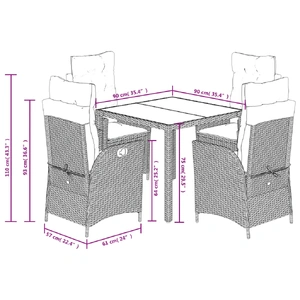 This garden dining set is a great choice for al fresco dining or just relaxing in the garden, backyard, or patio. Durable material: PE rattan, also known as poly rattan, is a strong, low-maintenance synthetic material that looks like natural rattan. It's lightweight, easy to clean, and commonly used for outdoor furniture due to its durability and weather-resistant properties.Adjustable backrest and footrest: This garden seat has a handle. You can adjust the backrest and footrest to any position by pulling the handle, and quickly return them to their original positions.Comfortable seat experience: This outdoor furniture, complete with thickly padded cushions, offers a comfortable seating experience.Removable and washable cover: These seat cushions feature removable covers for easy washing and maintenance. The back cushions have a flap at the back for easy attachment to the backrests.Glass tabletop: The outdoor table's top is made from strong and durable tempered glass, making it easy to clean with a damp cloth and adding a touch of elegance to your outdoor space. Good to know:To make sure your outdoor furniture stays beautiful, we recommend protecting it with a waterproof cover.