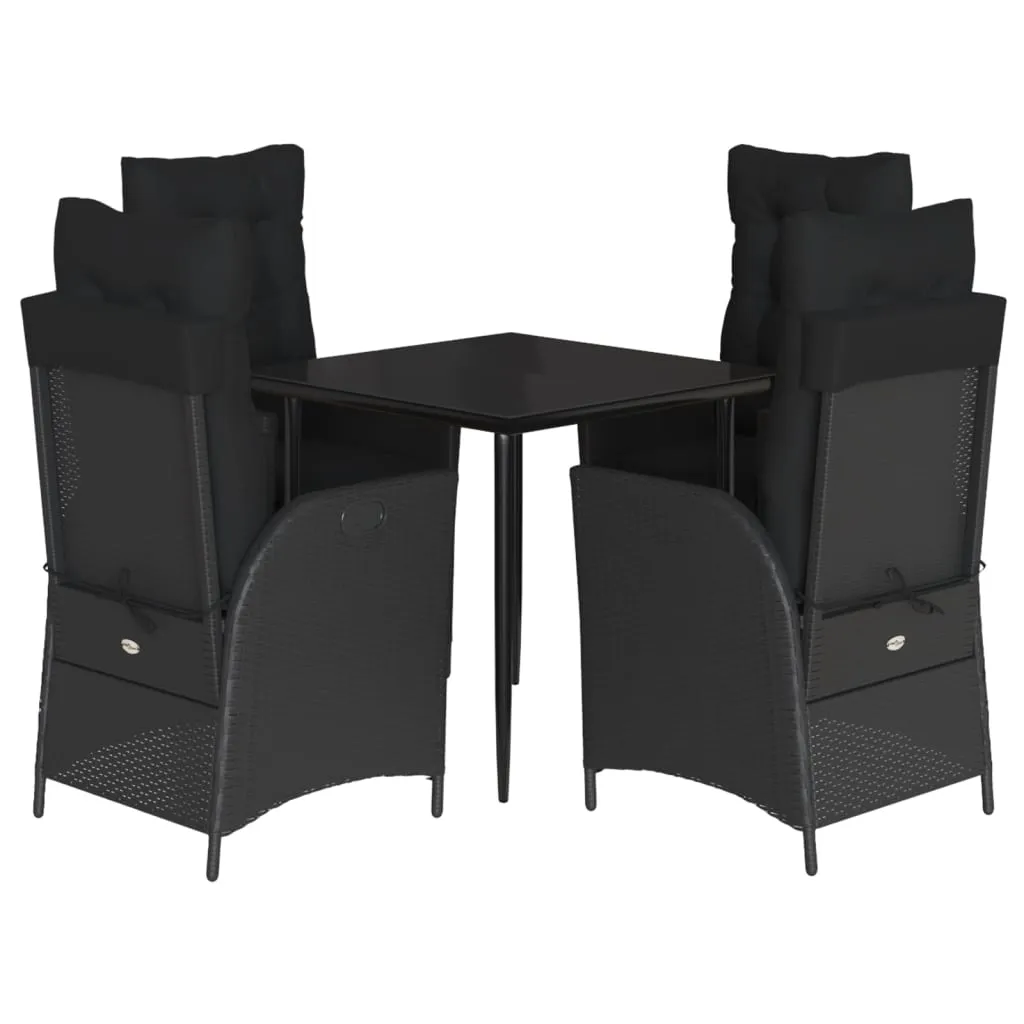 This garden dining set is a great choice for al fresco dining or just relaxing in the garden, backyard, or patio. Durable material: PE rattan, also known as poly rattan, is a strong, low-maintenance synthetic material that looks like natural rattan. It's lightweight, easy to clean, and commonly used for outdoor furniture due to its durability and weather-resistant properties.Adjustable backrest and footrest: This garden seat has a handle. You can adjust the backrest and footrest to any position by pulling the handle, and quickly return them to their original positions.Comfortable seat experience: This outdoor furniture, complete with thickly padded cushions, offers a comfortable seating experience.Removable and washable cover: These seat cushions feature removable covers for easy washing and maintenance. The back cushions have a flap at the back for easy attachment to the backrests.Glass tabletop: The outdoor table's top is made from strong and durable tempered glass, making it easy to clean with a damp cloth and adding a touch of elegance to your outdoor space. Good to know:To make sure your outdoor furniture stays beautiful, we recommend protecting it with a waterproof cover.