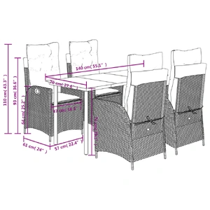 This garden dining set is a great choice for al fresco dining or just relaxing in the garden, backyard, or on the patio. Durable material: PE rattan, also known as poly rattan, is a strong, low-maintenance synthetic material that looks like natural rattan. It's lightweight, easy to clean, and commonly used for outdoor furniture due to its durability and weather-resistant properties.Adjustable backrest: This garden seat has a handle. You can adjust the backrest to any position by pulling the handle, and quickly return it to its original position.Comfortable seat experience: This outdoor furniture, complete with thickly padded cushions, offers a comfortable seating experience.Removable and washable cover: These seat cushions feature removable covers for easy washing and maintenance. The back cushions have a flap at the back for easy attachment to the backrests.Glass tabletop: The outdoor table's top is made from strong and durable tempered glass, making it easy to clean with a damp cloth and adding a touch of elegance to your outdoor space. Good to know: To make sure your outdoor furniture stays beautiful, we recommend protecting it with a waterproof cover.
