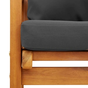 This wooden garden lounge set has an elegant design and is a great choice for relaxing and enjoying in the garden or patio. Solid acacia wood: The outdoor lounge set is made of solid acacia wood for sturdiness and stability. Solid acacia wood is a beautiful natural material. Acacia wood has beautiful wood grains make every piece of furniture unique and slightly different from each other.Comfortable seating experience: Featuring armrests and a backrest, the patio lounge set gives you the utmost comfort. Also, the thickly padded cushions provide comfort for your sitting time.Stable and easy-to-clean tabletop: This garden table has an acacia wood top that is sturdy, durable, and easy to clean with a damp cloth.Wide applications: The garden seating is perfect for any front porch, patio, backyard, lawn, garden, etc. Good to know:To make sure your outdoor furniture stays beautiful, we recommend protecting it with a waterproof cover.