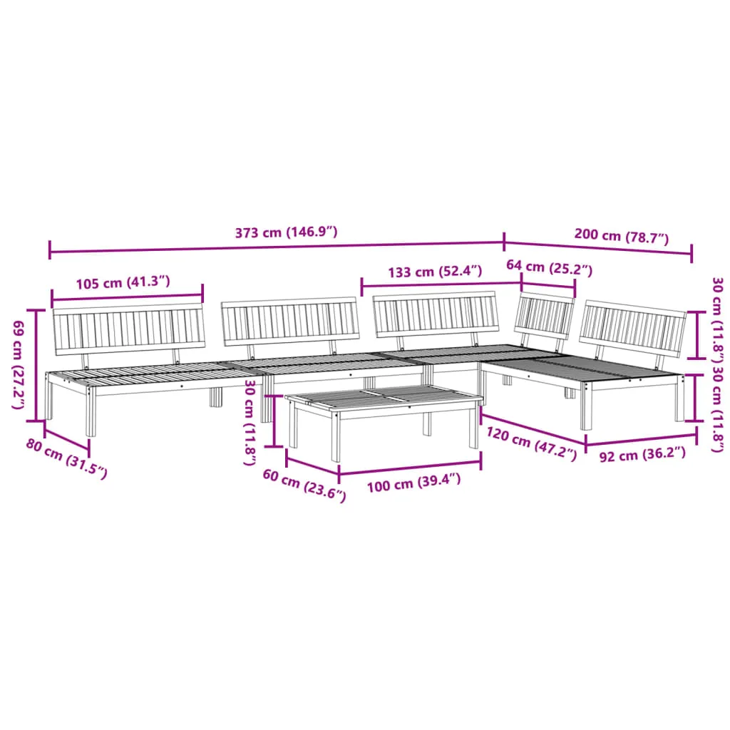 This wooden pallet sofa set with slatted design will make a great addition to your garden, patio, or terrace for enjoying a cosy time with your family or friends. Long-lasting material: Solid acacia wood is a beautiful natural material. Acacia wood is a tropical hardwood, which is dense, sturdy, and durable.Stable and easy-to-clean tabletop: This garden table has an acacia wood top that is sturdy, durable, and easy to clean with a damp cloth.Well-ventilated and pooling prevention: The slatted design promotes optimal airflow and effectively prevents water pooling, ensuring a dry and comfortable seat.Modular design: This outdoor furniture set has a modular design, making it completely flexible and easy to move around, so you can create a customised outdoor furniture arrangement. Good to know:To make sure your outdoor furniture stays beautiful, we recommend protecting it with a waterproof cover.Cushion is not included with this pallet sofa. We do offer a standard 120x80 cm pallet cushion. You can check our shop for a matching cushion.