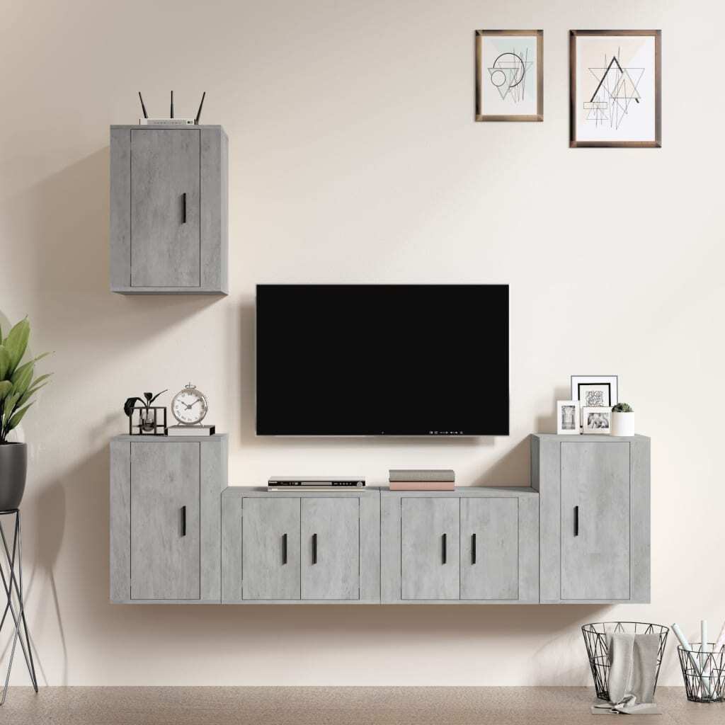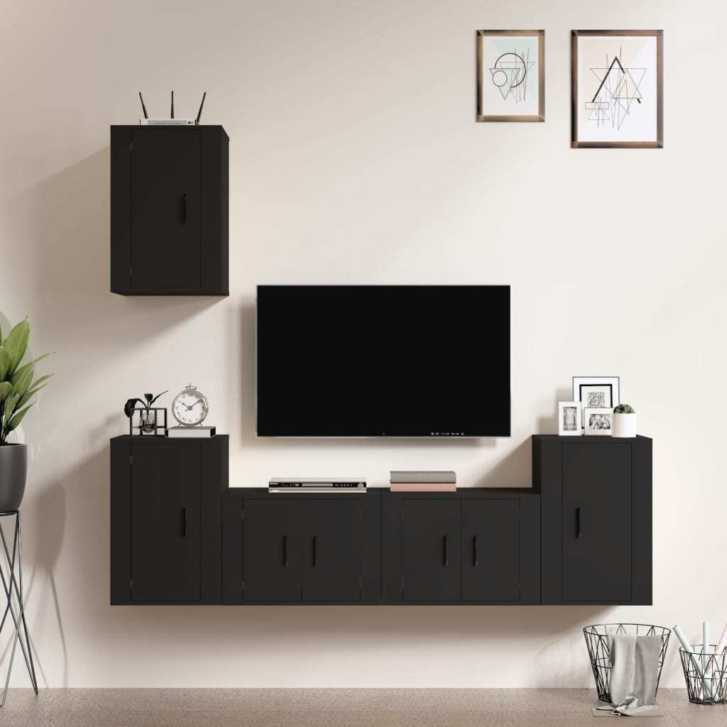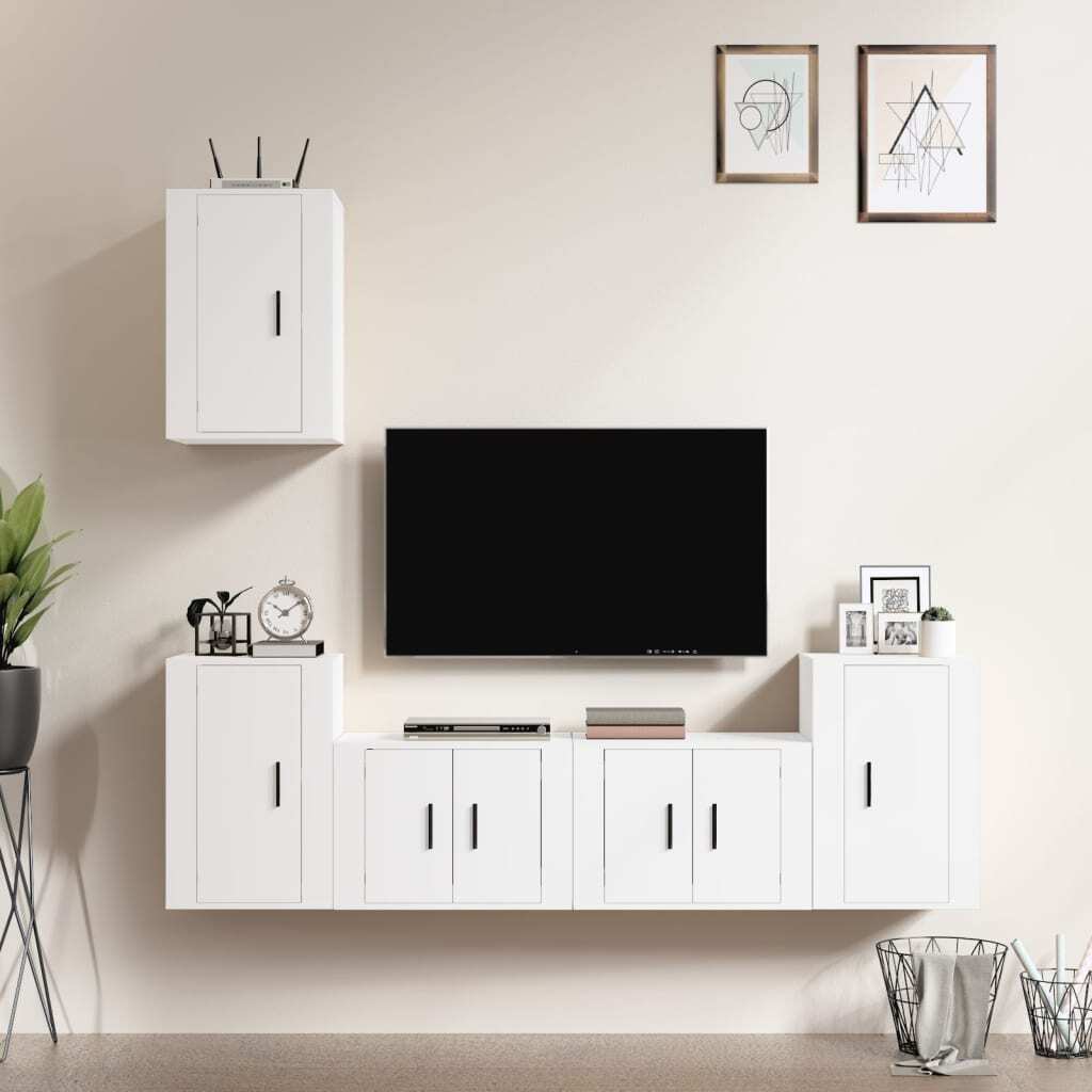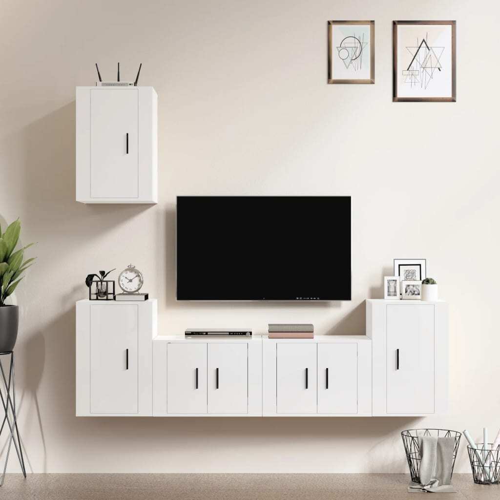 This classic TV cabinet set is designed to be a focal point of your room, featuring a trendy yet practical design. Sturdy material: The engineered wood is of exceptional quality with smooth surface and also features strength, stability and resistance to moisture.Ample storage space: The TV stand set provides ample storage space to keep all your magazines, DVDs and any other items well organised.Wall-mounted design: The TV unit doesn't take up any floor space. You can hang it on the wall easily. Good to know:To make assembly as easy as possible, each product is delivered with a manual.Screws and plugs for inside the wall are not included. We advise to find and use screws and plugs suitable specifically for your walls. If you're not sure, you can consult with a professional. Please read and follow each step of the instructions.