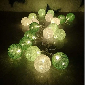 Green Cotton Ball String Fairy lights - 5cm diameter