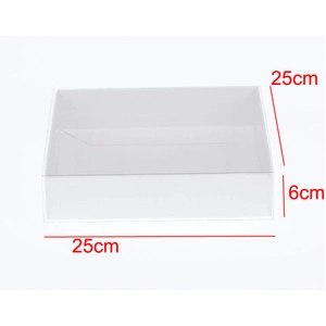 50 Pcs 250mm x 250mm x 60mm White Box with Clear Plastic Slide On Lid -