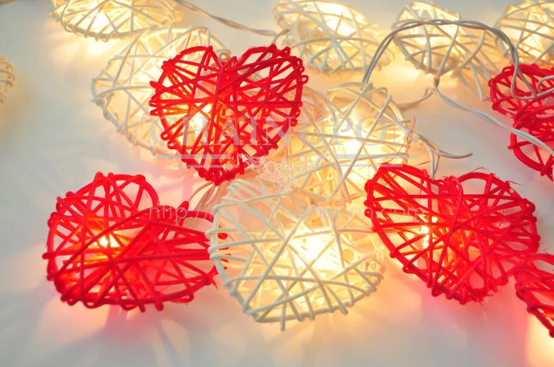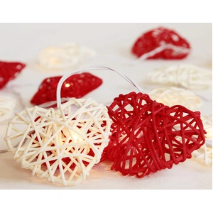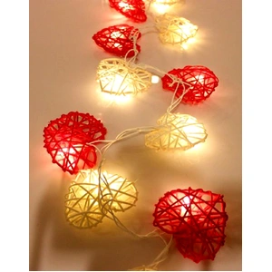 Red n White Rattan Heart String Fairy Lights