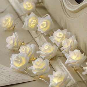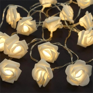 50 Roses/LED Bulbs (warm white) to a 5 metre length wire with a 3 x AA battery Pack