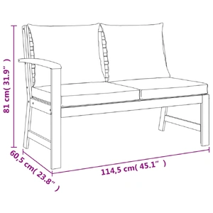 With timeless design, this wooden garden dining set with cushions adds a touch of rustic charm to your patio, terrace or garden. Durable material: Solid acacia wood is a beautiful natural material. Acacia wood is a tropical hardwood, which is dense, sturdy, and durable.Stable frame: The wooden frame of the dining set ensures sturdiness and stability.Practical table: The table offers space for meals, drinks and other decorative items.Modular design: Each piece is easy to move around, which makes it easy for you to create different layouts that fit your needs. You can also find other sectional units with the same design and style in our webshop to arrange your own furniture patterns.Comfortable seat experience: With the thickly padded seat and back cushions, the outdoor dining set is highly comfortable. Good to know:To make assembly as easy as possible, each product is delivered with a manual. Note:To make sure your outdoor furniture stays beautiful, we recommend protecting it with a waterproof cover.The table is lower than usual dining tables, and it's especially suitable to combine with garden sofa sets.