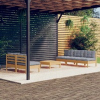 This garden lounge set is an excellent choice for relaxing and enjoying the weather, taking a nap, or chatting with your family or friends. The patio lounge set is made of solid pinewood, making it sturdy and stable. The cushions add extra comfort. You can combine it with other modular segments to create your own personal garden lounge set configurations! Note: In order to extend the life of your outdoor furniture, we recommend you to clean it regularly and do not leave it outdoors without protection unnecessarily.Clean: Use a mild soap solutionStoring: If possible, store in a cool, dry place indoors. If the product is stored outdoors, protect it with a waterproof cover. Wipe and dry the excess water or snow from flat surfaces after a rain or snowfall. Allow sufficient air circulation to avoid moisture-related damage.