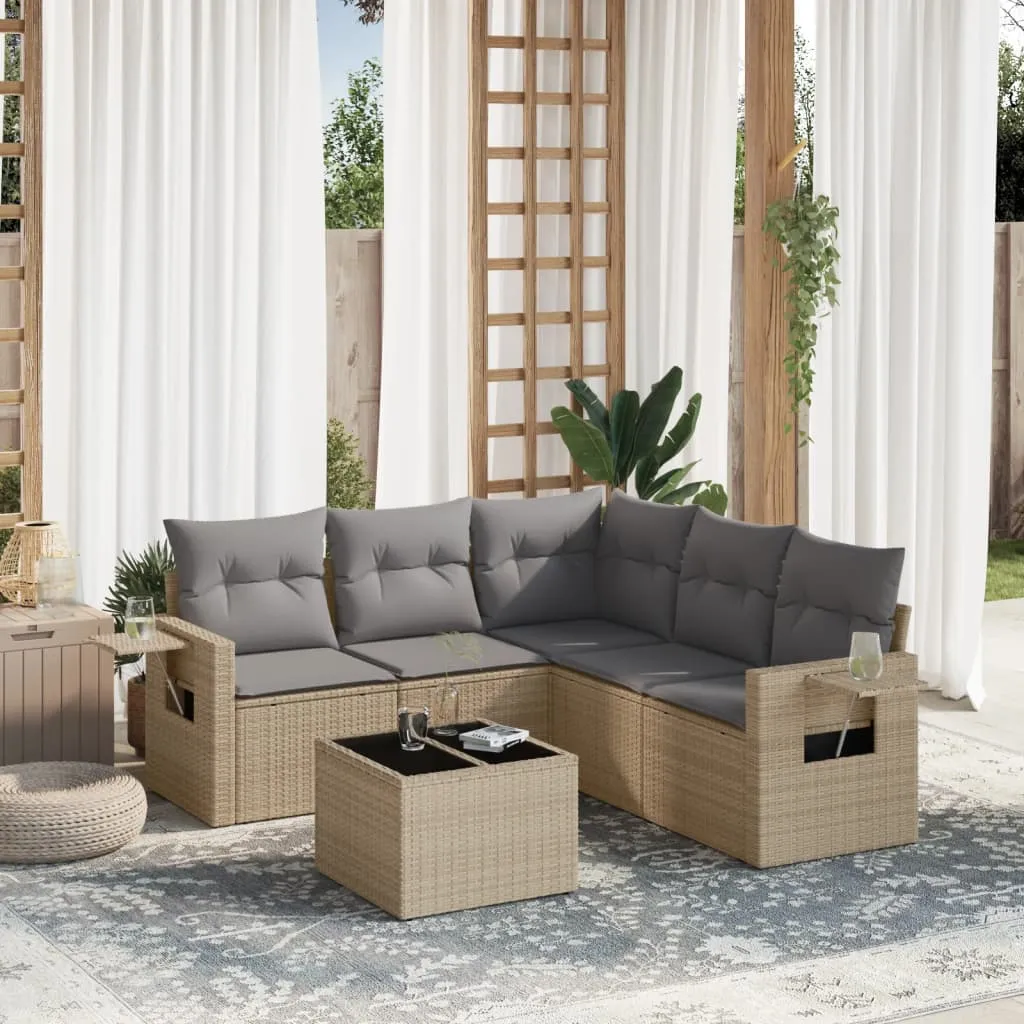 This garden sofa set is the perfect addition to your backyard, terrace, or patio, providing a comfortable and inviting space for chatting with family and friends or simply relaxing and enjoying the outdoors. Durable material: PE rattan, also known as poly rattan, is a strong, low-maintenance synthetic material that looks like natural rattan. It's lightweight, easy to clean, and commonly used for outdoor furniture due to its durability and weather-resistant properties.Glass tabletop: The outdoor table's top is made from strong and durable tempered glass, making it easy to clean with a damp cloth and adding a touch of elegance to your outdoor space. Convenient side table: This outdoor furniture features foldable side tables with a gas spring on the armrests, providing convenient spots to keep your essentials within easy reach. Comfortable seat experience: This outdoor furniture, complete with thickly padded cushions, offers a comfortable seating experience.Modular design: This outdoor furniture set has a modular design, making it completely flexible and easy to move around, so you can create a customised outdoor furniture arrangement. Good to know:To make sure your outdoor furniture stays beautiful, we recommend protecting it with a waterproof cover.