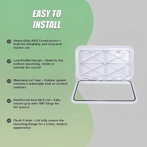 Perfect for boats, RVs, kayaks, and morethis marine-grade hatch combines rugged performance with clean aesthetics for dependable access and storage on the go.