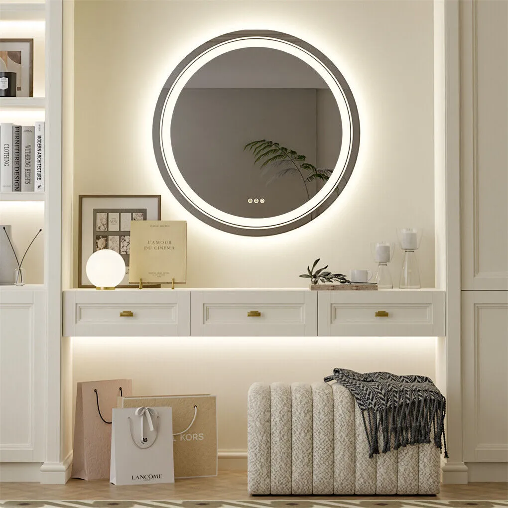 60cm LED Bathroom Mirror Anti-fog Circle Backlit HD