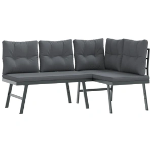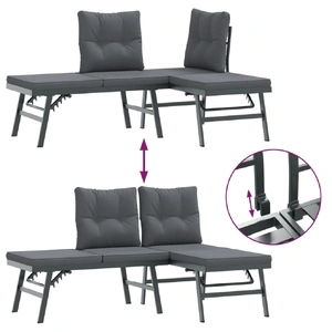 This garden bench set is perfect for outdoor use and is designed to be the focal point of your garden, terrace, patio, etc. Robust and stable frame: The powder-coated steel frame is strong, stable, durable, and resistant to corrosion and harsh weather, ensuring long-lasting performance.Adjustable side seat: The small side seat panel of each sofa can be lifted up, turning the sofa into a comfortable lounger for relaxation. The adjustable seat can be set to 3 different levels to meet your needs for reading, sunbathing, or napping.Comfy design: The slightly curved backrests add extra seating comfort for the bench.Comfortable seat experience: This outdoor furniture, complete with a thickly padded cushion, offers a comfortable seating experience.Sturdy tabletop: The sturdy tabletop of the sofa table is perfect for placing your drinks, food, and other decorative items.Modern design: The coffee table not only adds charm to your living space but also effortlessly complements a wide range of furniture styles. Good to know:To make sure your outdoor furniture stays beautiful, we recommend protecting it with a waterproof cover.